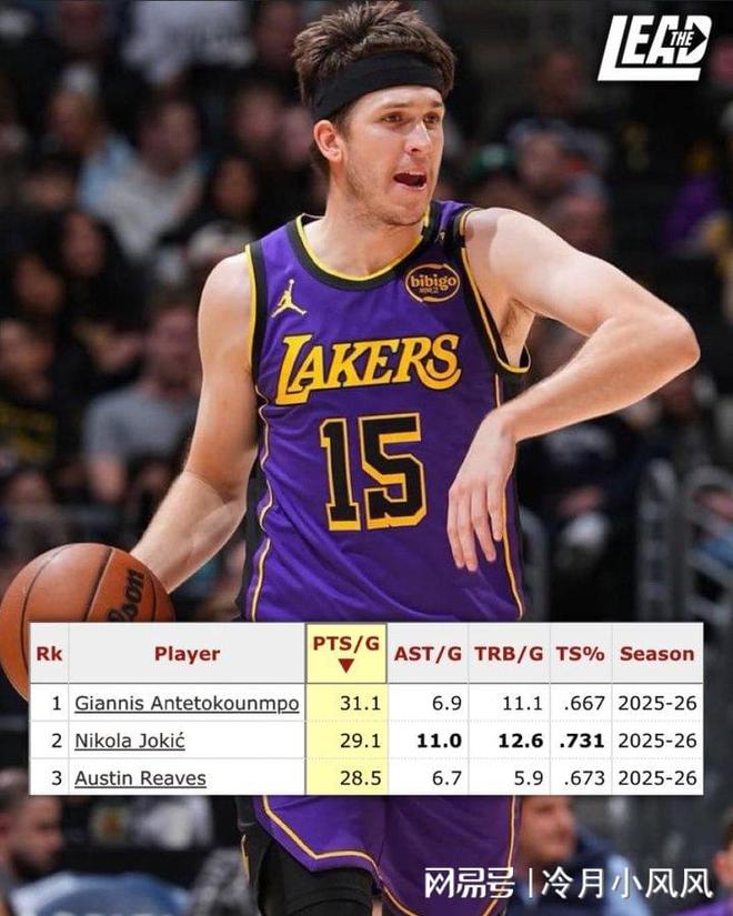 今日,据美国数据媒体《The Lead》统计报道,本赛季至今,整个NBA联盟中只有三位球员场均能看下至少28分5篮板5助攻,且命中率不低于65%,分别是掘金中锋约基奇、雄鹿前锋字母哥,以及湖人后卫奥斯汀里夫斯。需要注意的是,约基奇和字母哥是如今的第一中锋和第一大前锋,两个人加起来mvp拿过5次,其他大大小小荣誉更是数不胜数。因此,里夫斯能比肩这两位超巨,可以说是非常大的荣耀了。