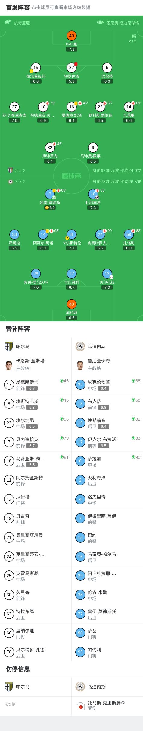乌迪内斯2-0帕尔马,扎尼奥洛建功,凯南-戴维斯锁定胜局